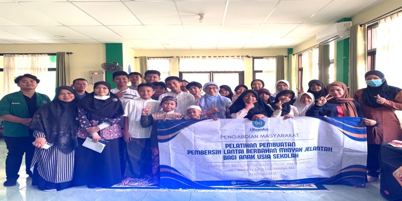 Tim dosen Fakultas Farmasi dan Sains (FFS) Universitas Muhammadiyah Prof. Dr. HAMKA (Uhamka) menggelar pelatihan pengolahan minyak goreng bekas menjadi pembersih lantai di Lembaga Kesejahteraan Sosial Anak (LKSA) Al-Ma’un, Matraman, Jakarta.